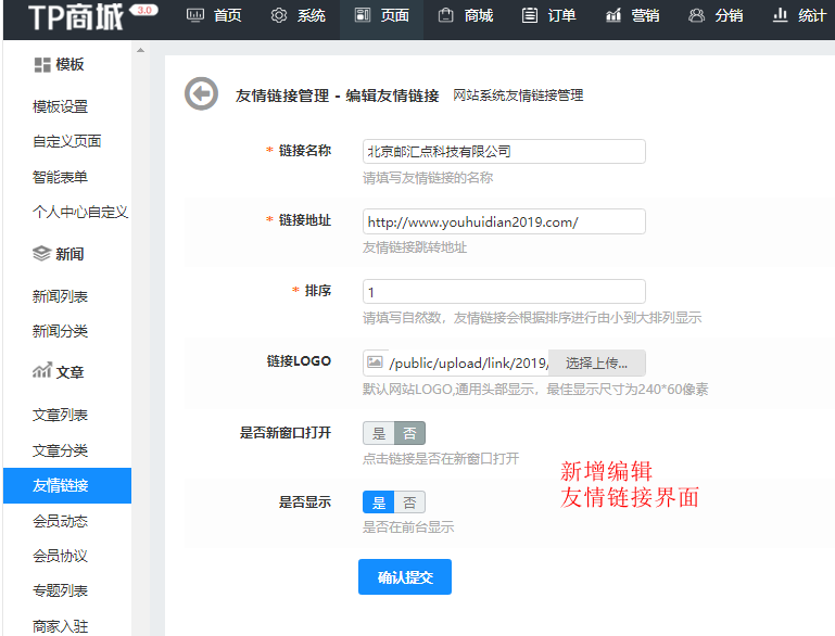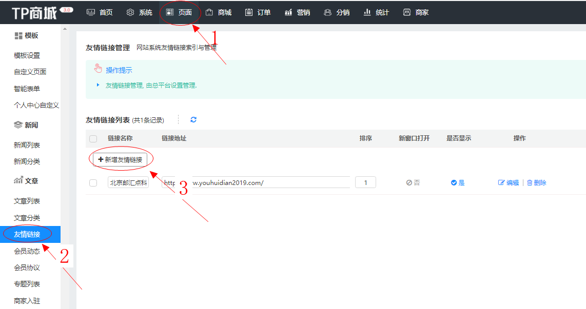 友情链接列表排序:数字设置的越小,排在最前面。
