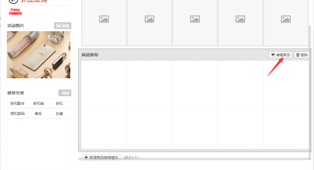 需要先添加商品推荐模块(最多添加5个)