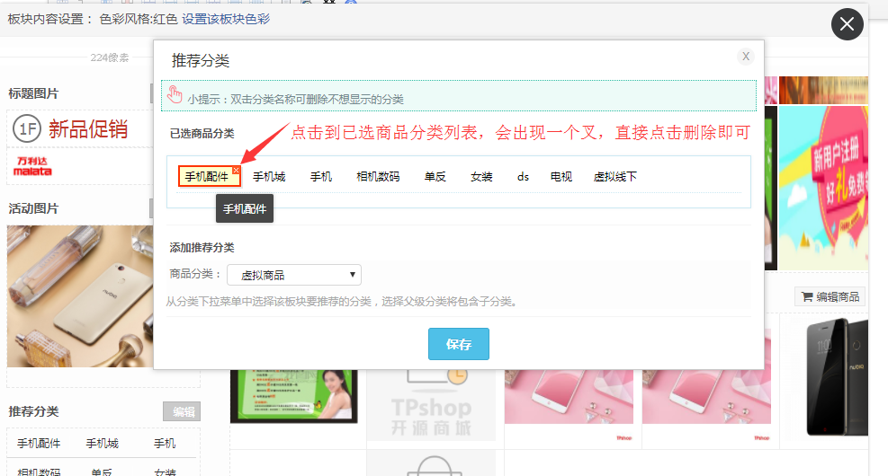 删除已选择的推荐分类