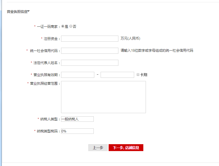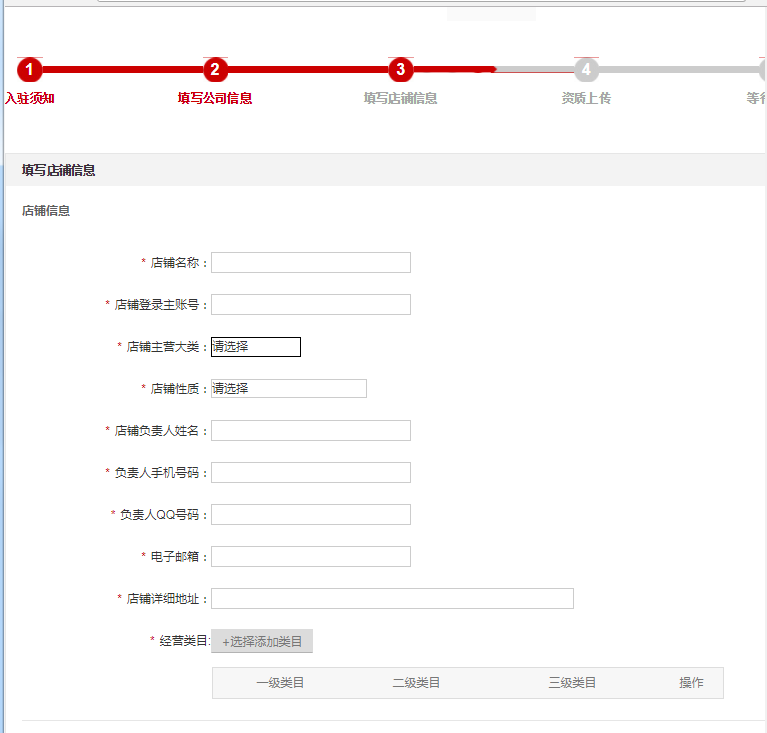 选择店铺类型:根据选择的店铺类型的不同,后面需要填写的信息也会有所不同。