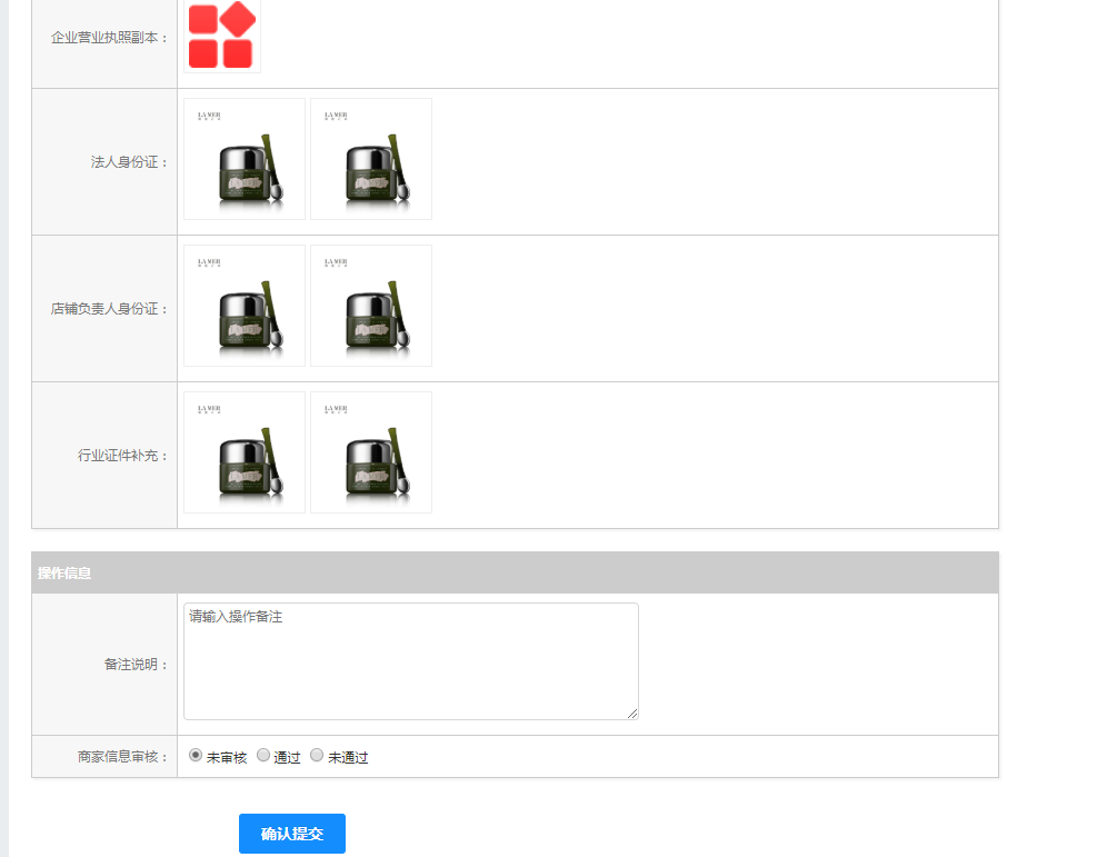 可查看到店铺入驻者的所有信息,并且可根据这些信息审核评估。