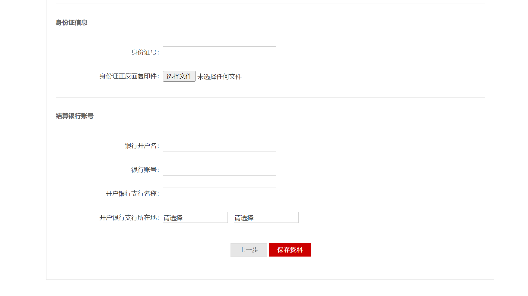 1,前台选择要入驻的商家类型(销售商/供货商)并填写入驻信息