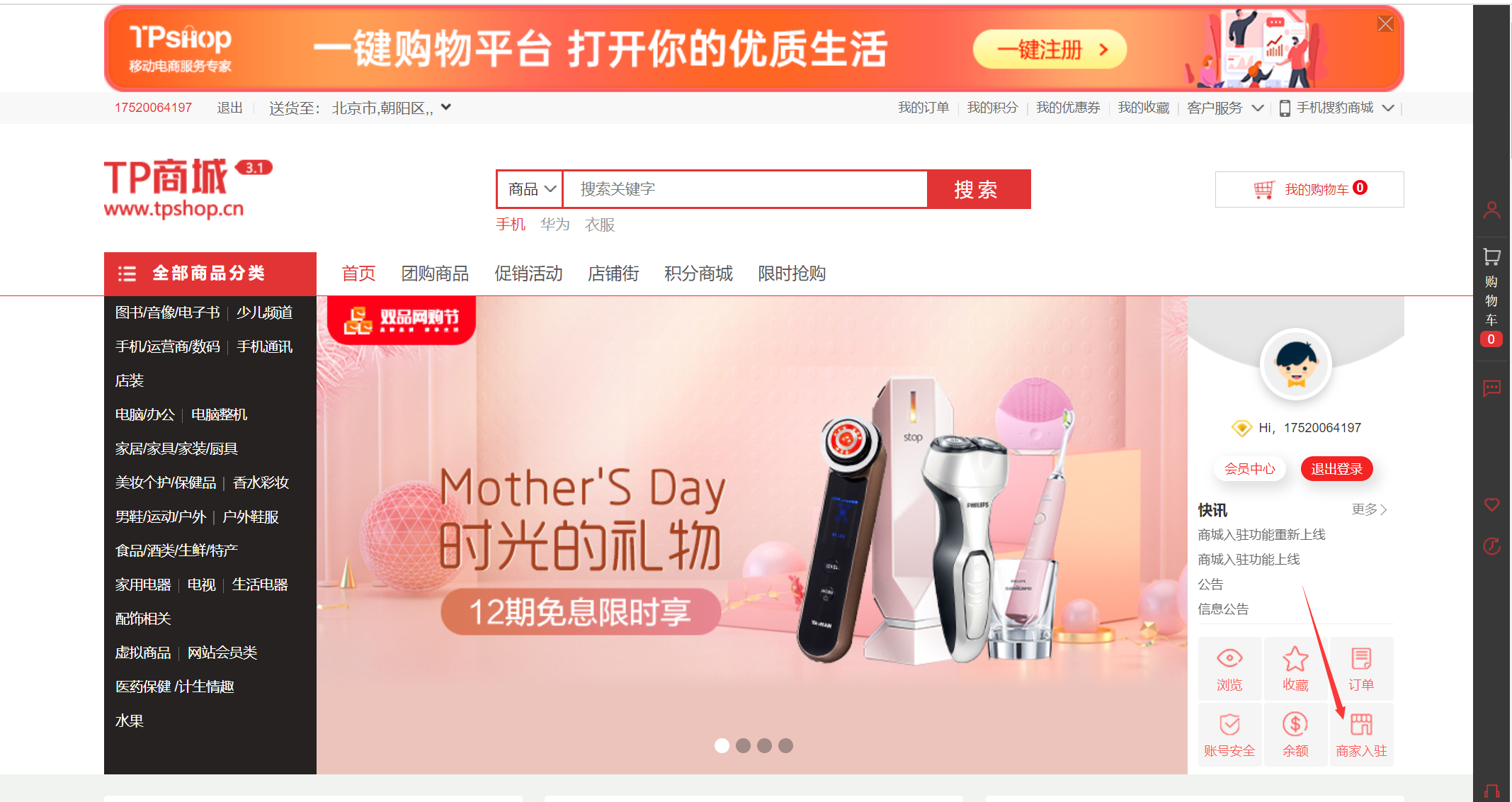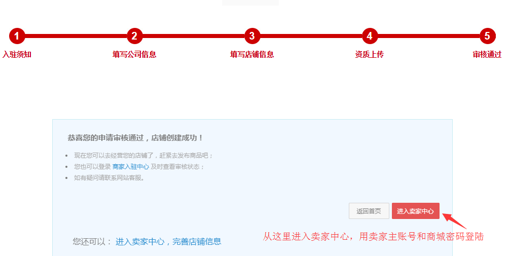店铺审核通过以后,入驻者可登陆到店铺进行管理。