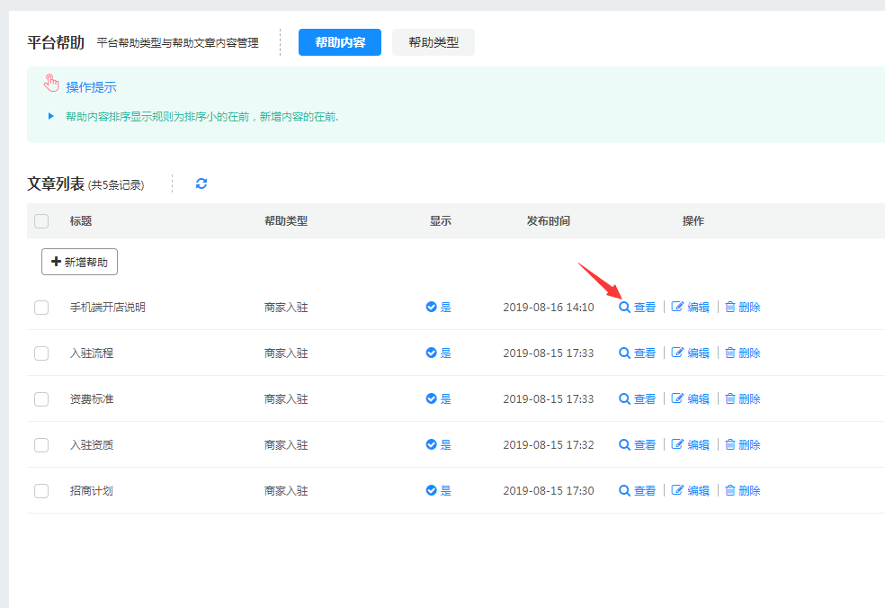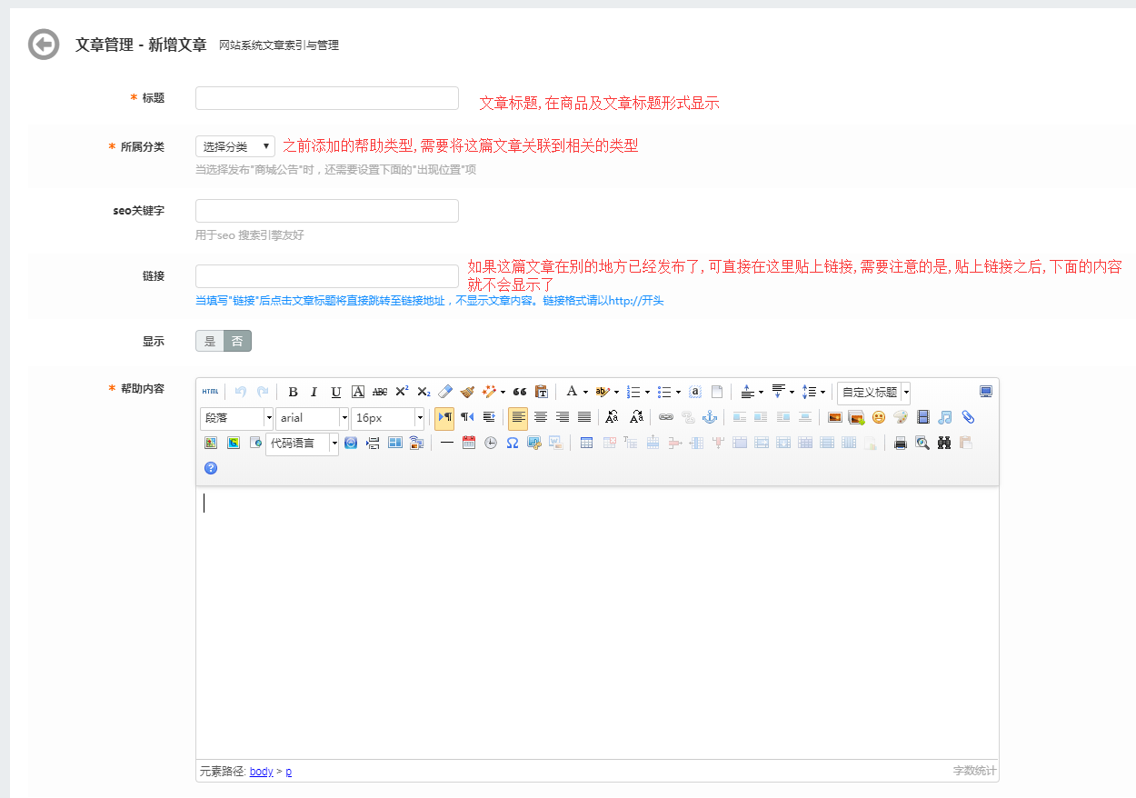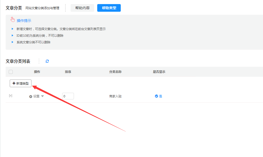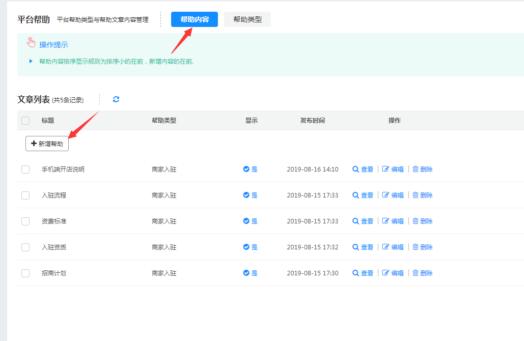 在添加好帮助类型以后,就可以添加帮章文章啦。