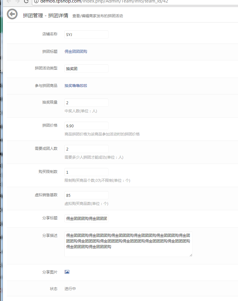 拼团订单列表也可以查看团员订单详情以及拼团活动。