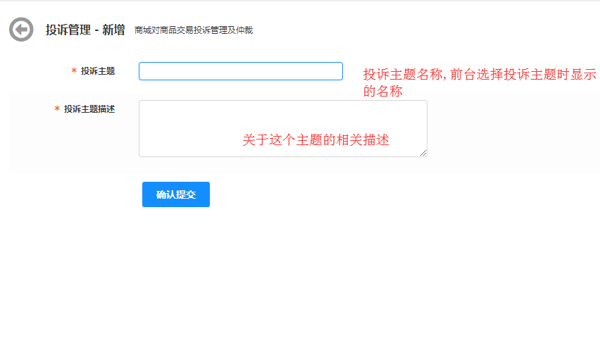 需要注意的是,投诉主题只能删除,不能编辑。删除以后,前台将无法再选择。