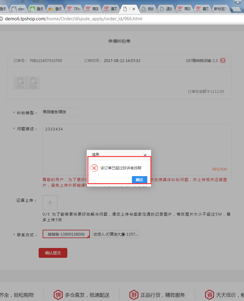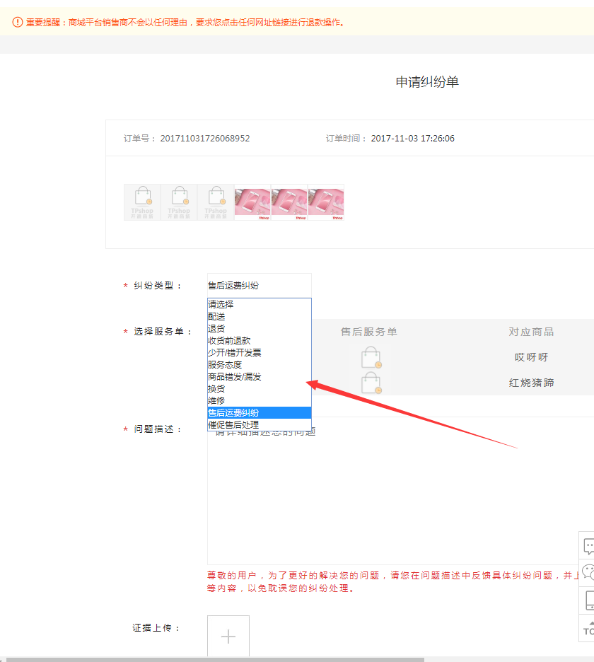 商城纠纷类型选择就是我们平台添加的投诉主题。