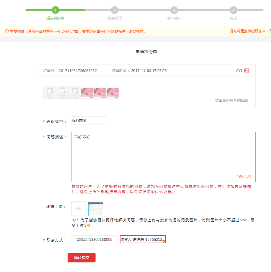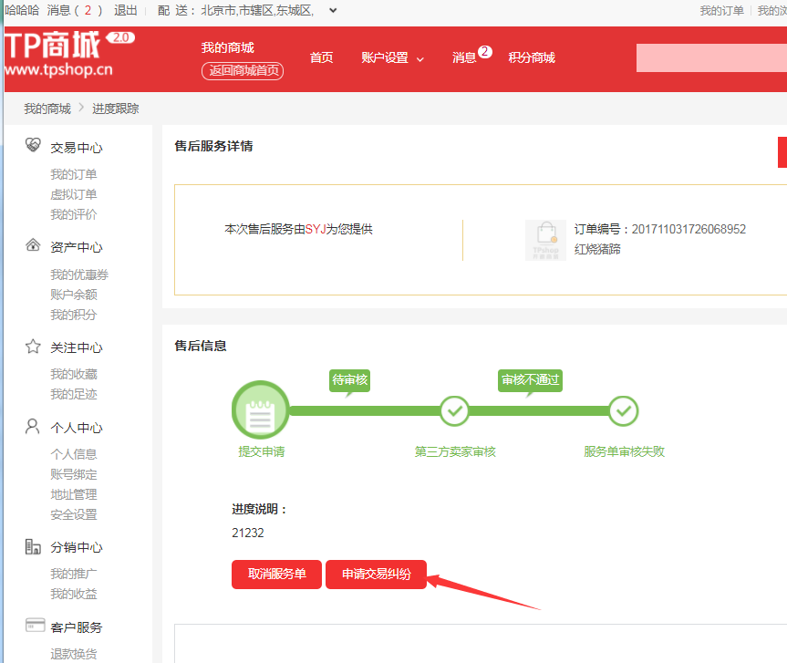 用户在与商家沟通无果后,可申请商城介入
