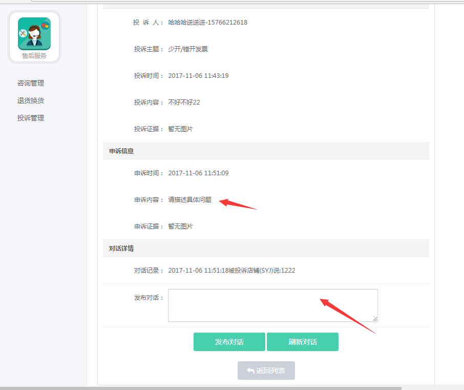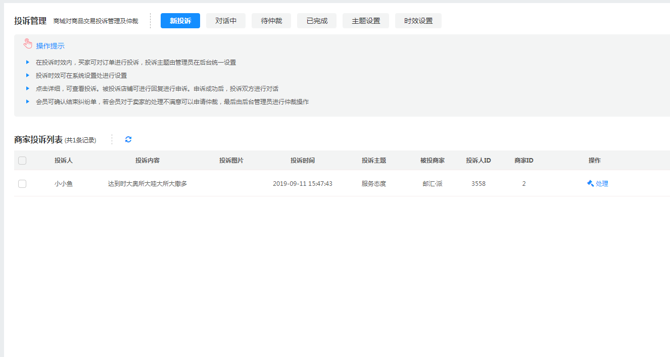 商家中心投诉管理(售后服务--投诉管理)