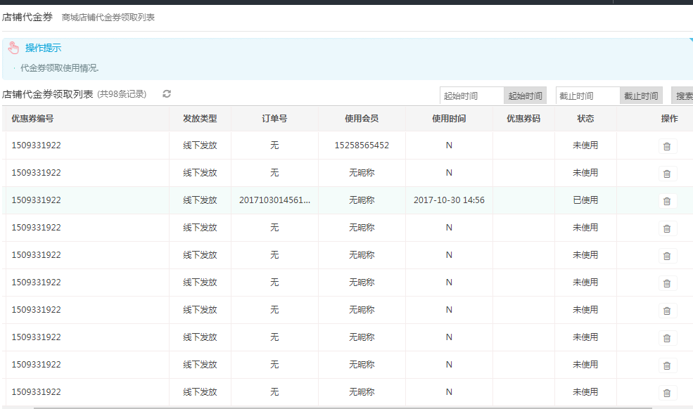 3,查看优惠券领取使用列表