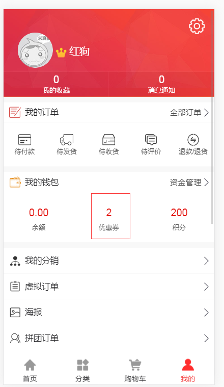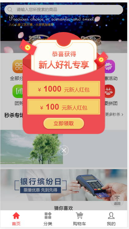 我们首先要注册一个用户,登录上之后首页有新人优惠券弹出