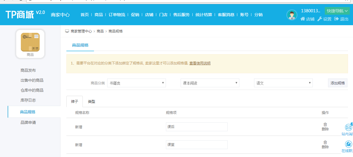 商家篇--商家使用规格流程