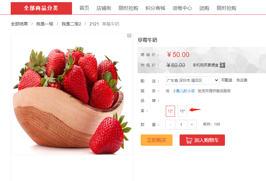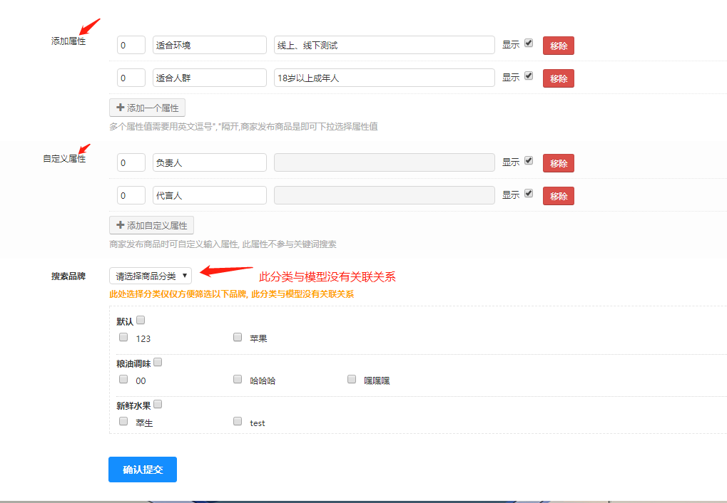 当商品分类与该模型关联以后。在店铺添加商品时,只需要选择该分类就可以选择属性值。