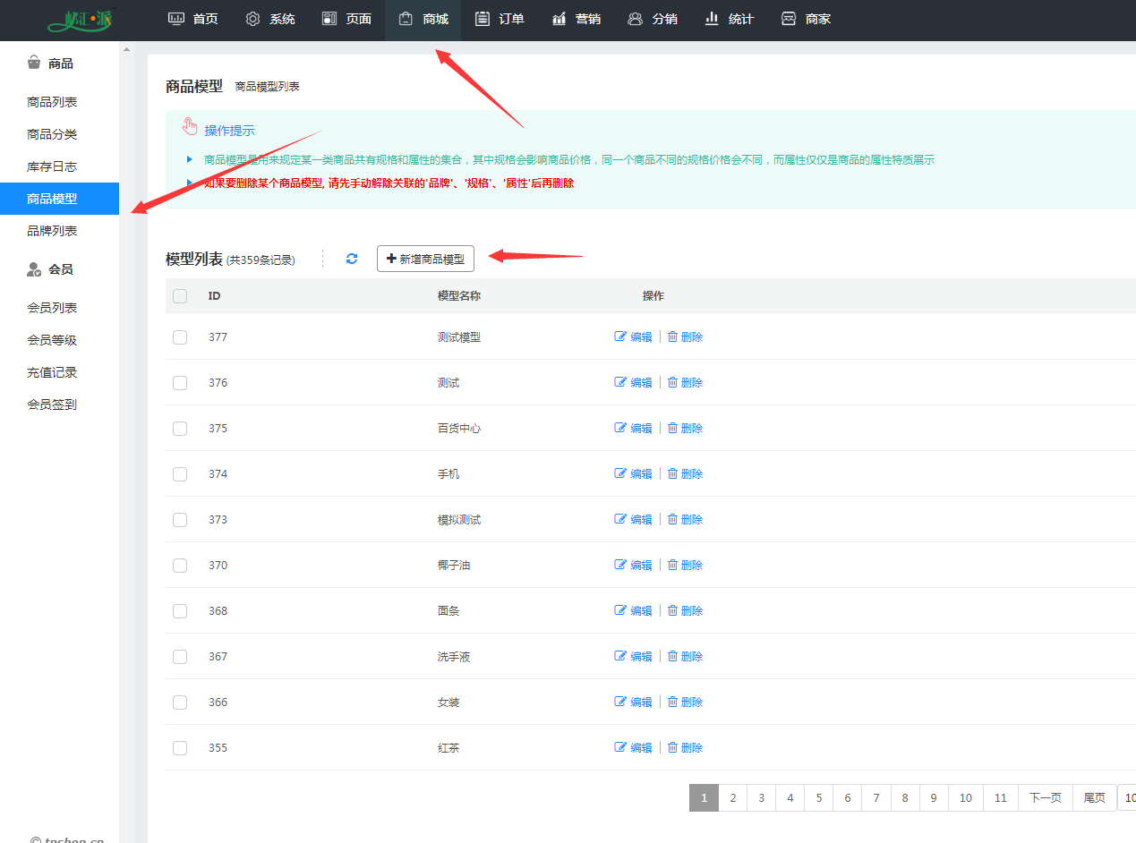 登入管理后台——点击商城——点击商品分类中的商品模型——新增商品模型