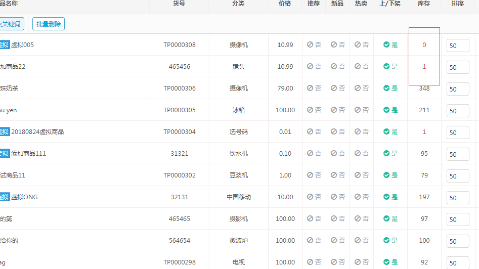 当商品库存小于这个值时,商品列表页里库存直接显示为红色。并且生成一个商品库存预警列表。