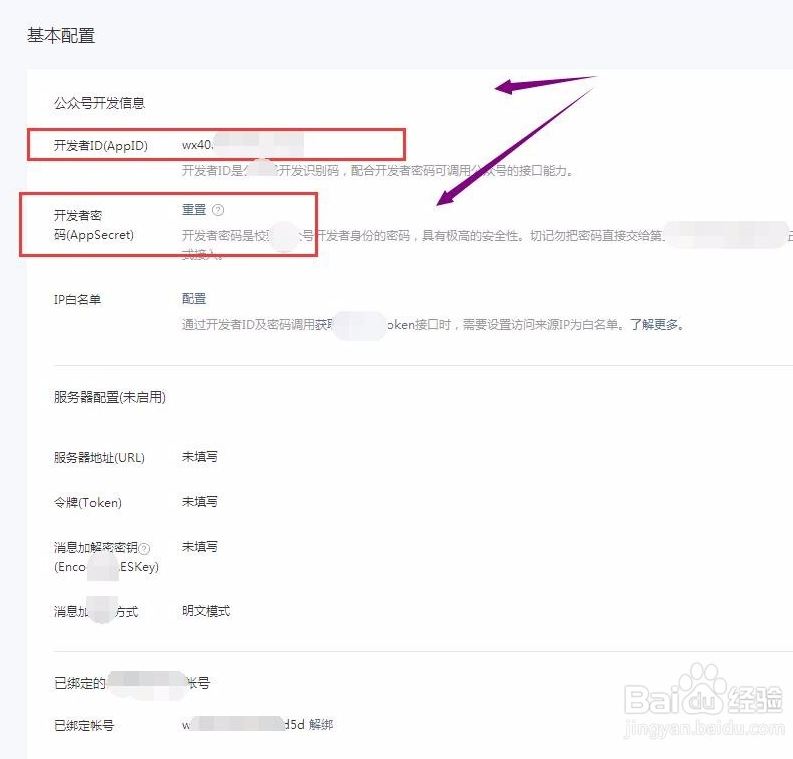 第三步:登录微信公众平台,获取公众帐号secert和