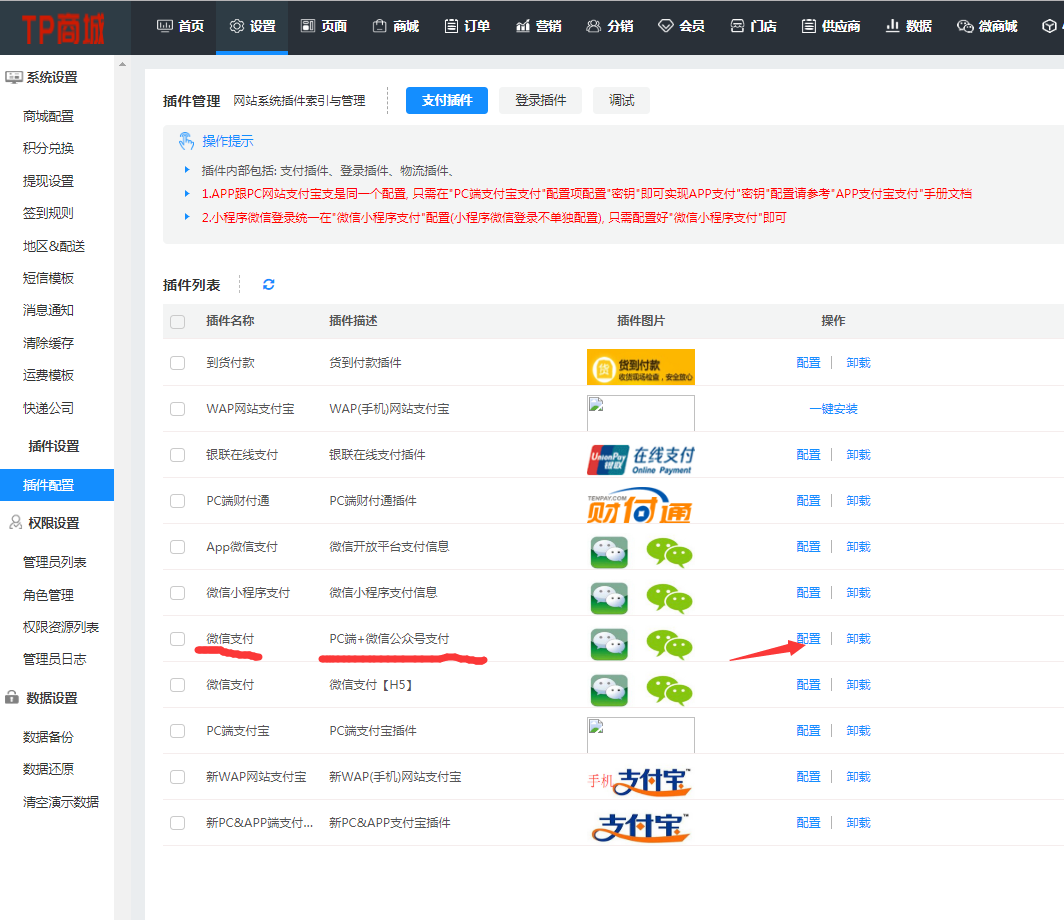 检查方法: 后台 -> 插件工具 -> 登录插件 -> 微信支付插件