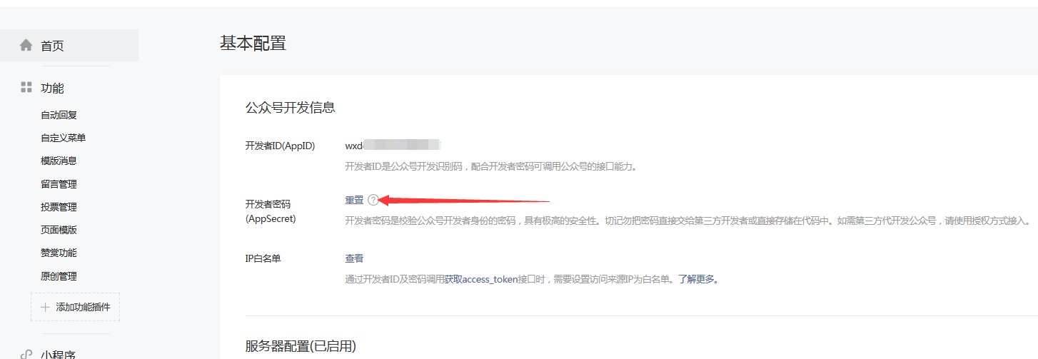 进入微信公众号平台, 点击左侧菜单,开发->基本设置->开发者密码(AppSecret)