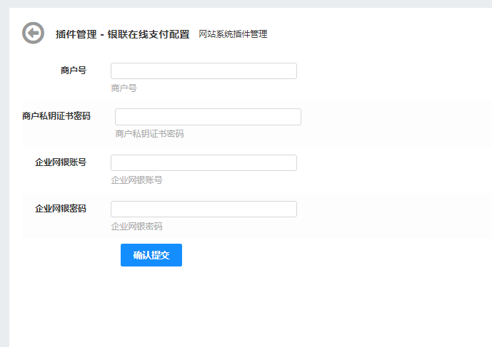 将第三,四步骤中的商户号和支付密钥配置填写在TPshop银联支付插件中