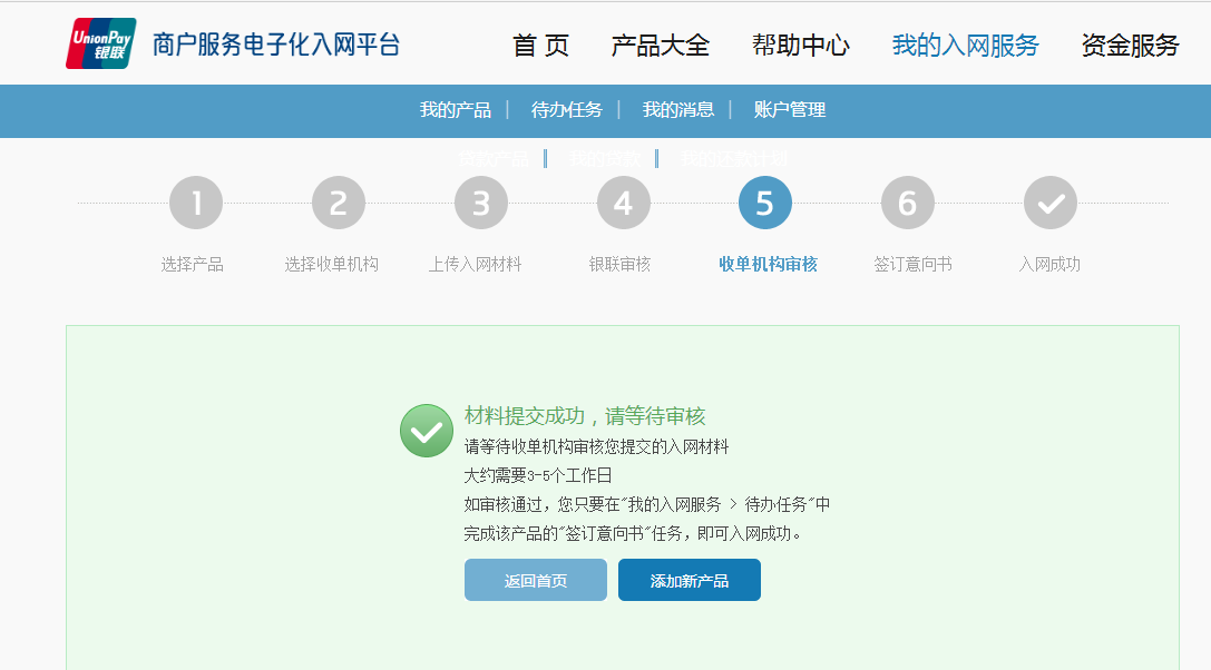 注册完成之后, 签约产品, 首次签约,需要填写资料审核