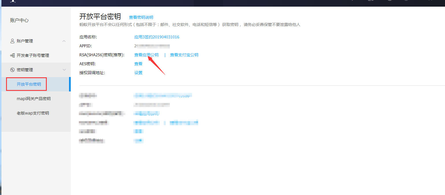 支付宝公钥:对应支付宝开放平台密钥的 "支付宝公钥"