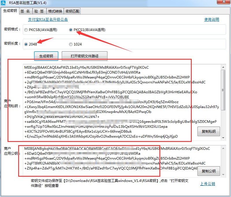 打开工具, 选择密钥长度"1024" , "PCKS1(非JAVA适用)"