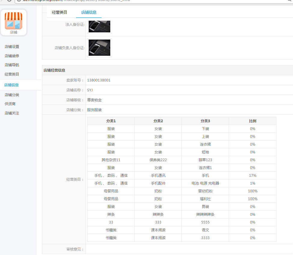 1,查看店铺信息(店铺--店铺信息),店铺信息只能查看不能操作