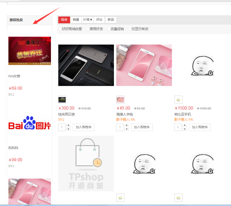 推荐商品显示位置