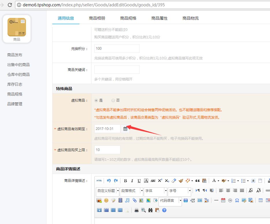 虚拟商品过期以后,会自动下架到仓库中的商品