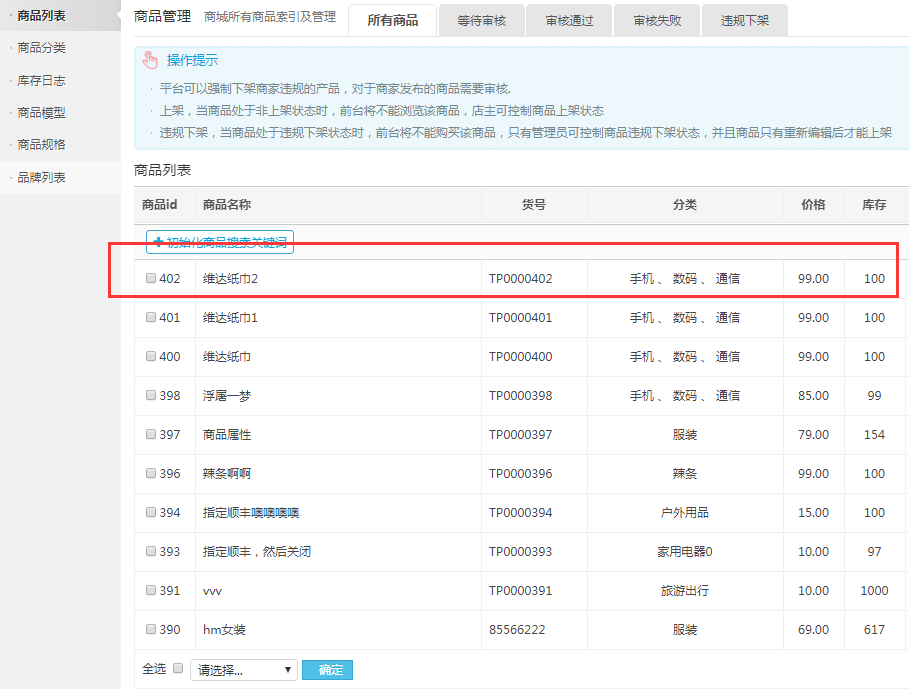 1,平台设置了店铺商品不需要审核可直接上架(商家在添加商品之后可直接上架到商城)