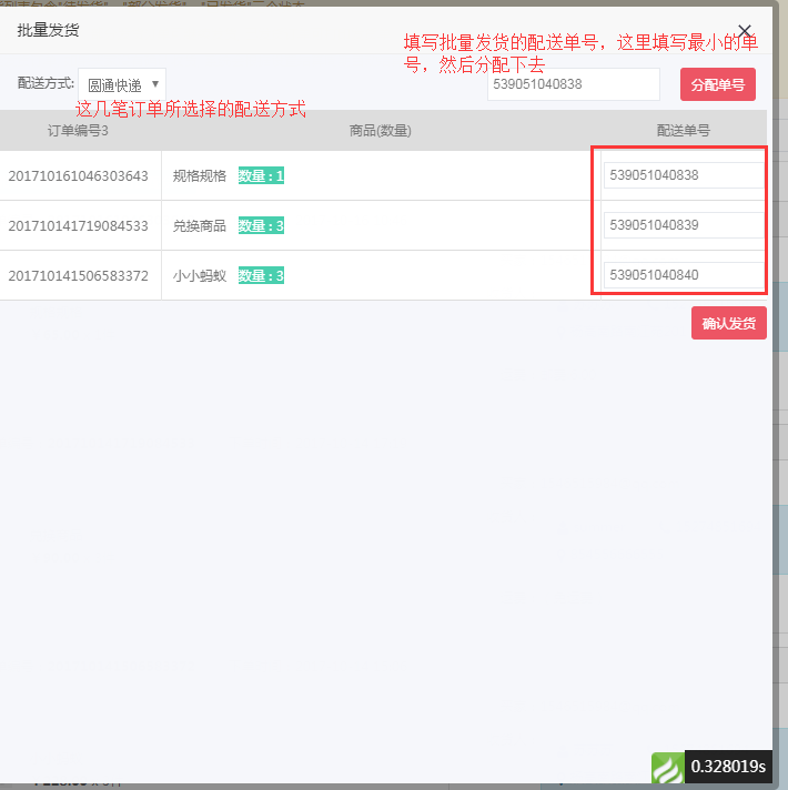 需要注意的是,所选择的同一批发货的订单必须是使用的同一个快递公司。