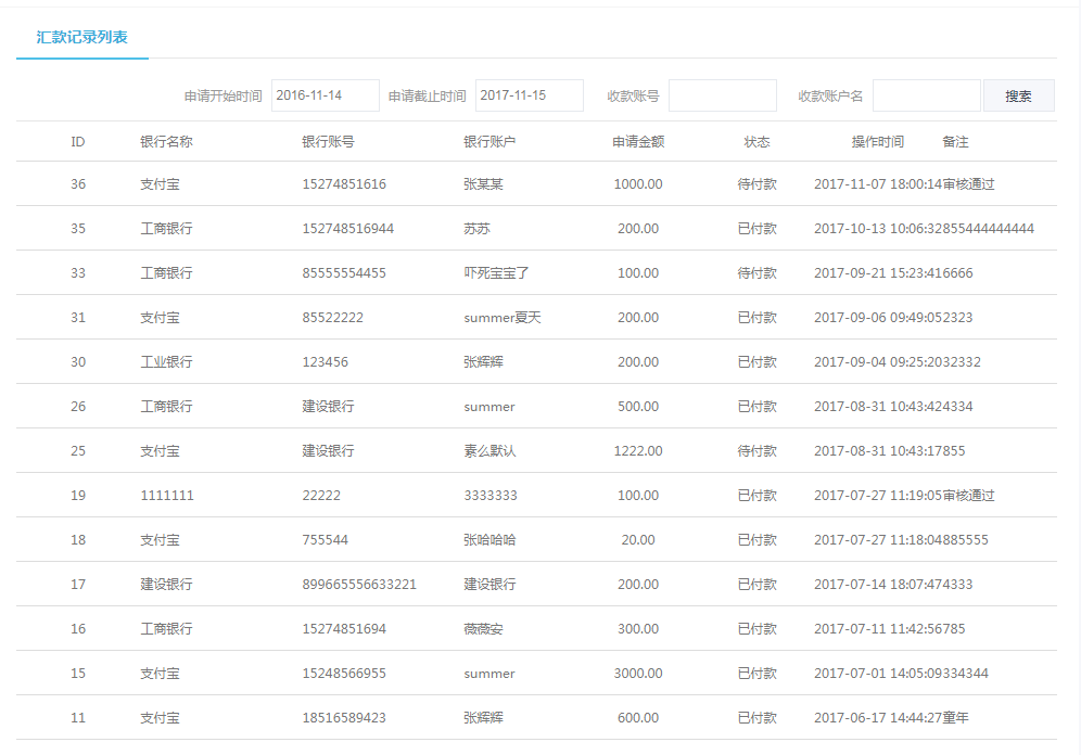 2,当平台审核提现申请成功以后,并且已经汇款以后,商家可在已汇款列表查看已汇款记录(统计结算--已汇款列表)