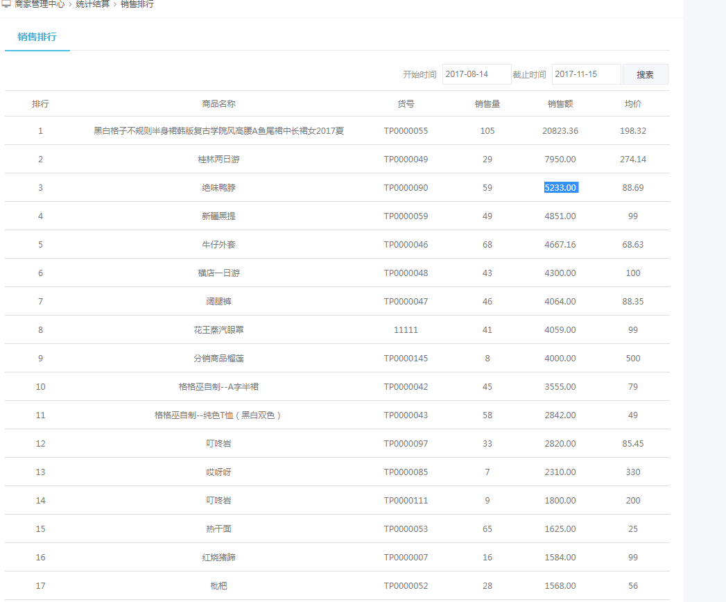 销售排行是将整个店铺销售额最高的排在最前面,店家可通过该排行分析出卖的最好的商品。