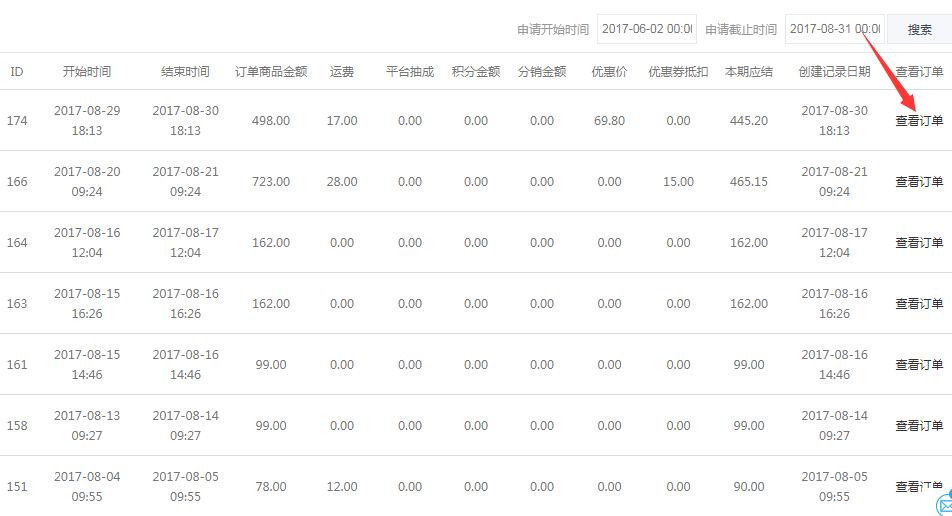 1,商家查看结算记录