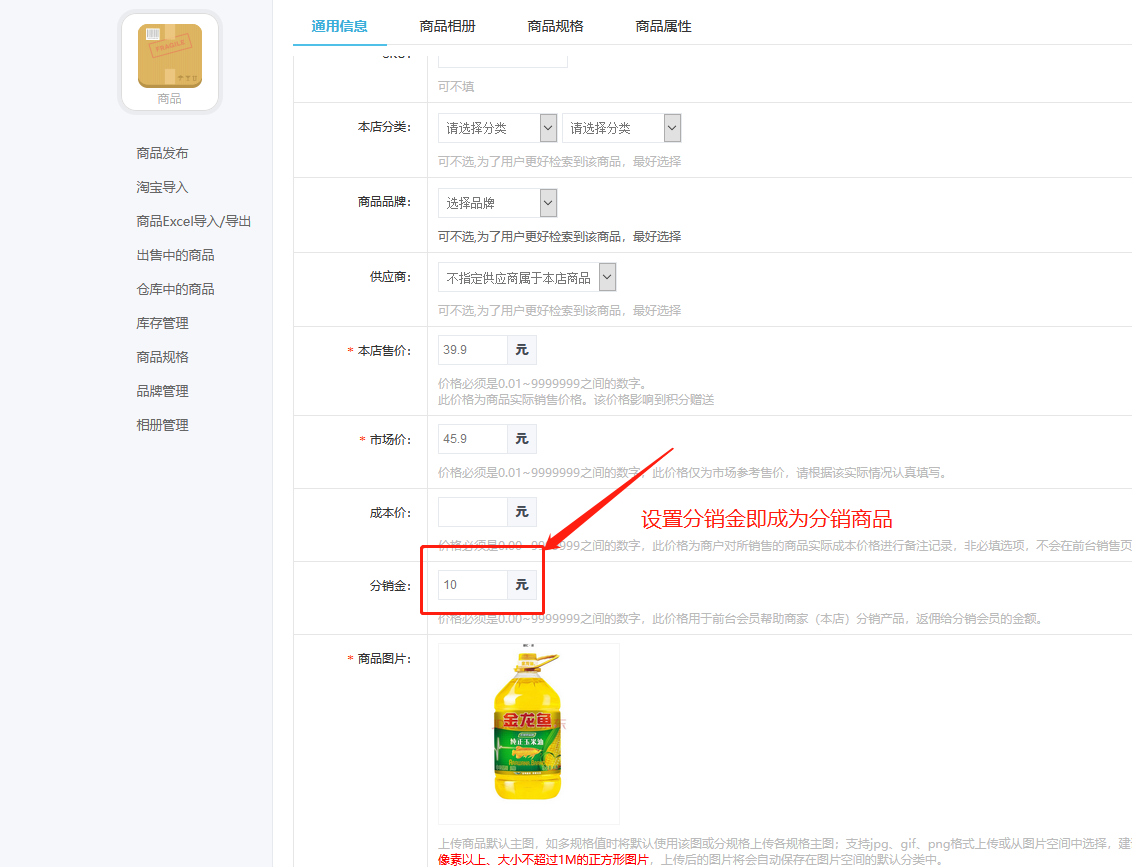 2,商家设置分销商品(商品--商品发布)