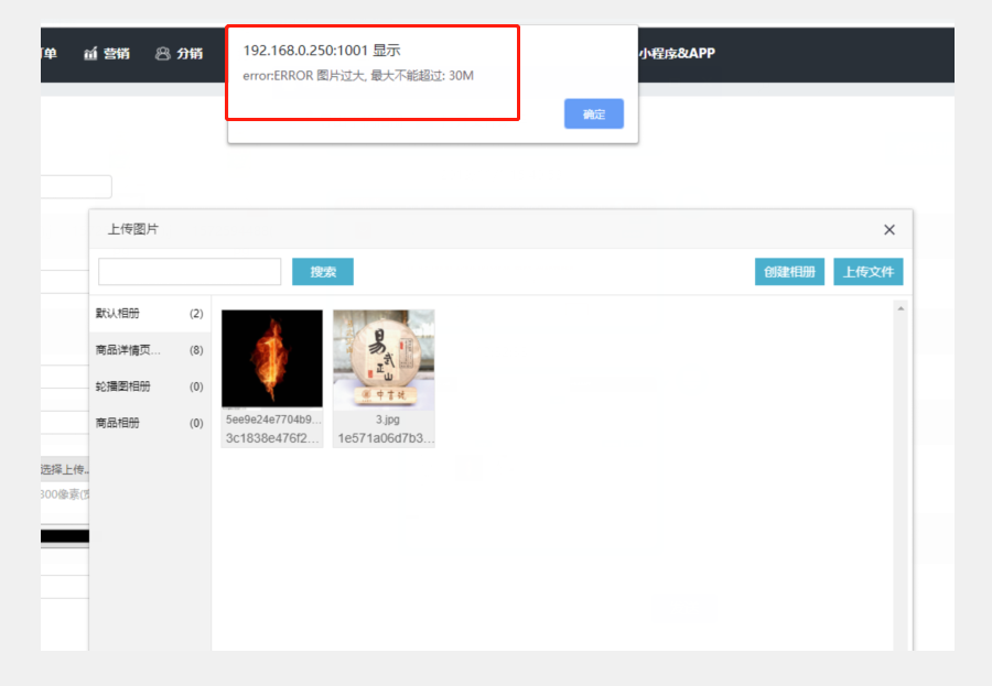后台上传文件过程中提示上传失败, 如下图: