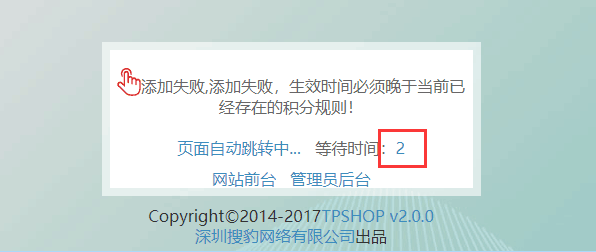 如下图, 成功或失败提示页面默认时间太短如何修改.