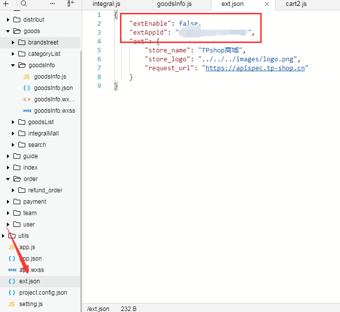 找到“ext.json”文件