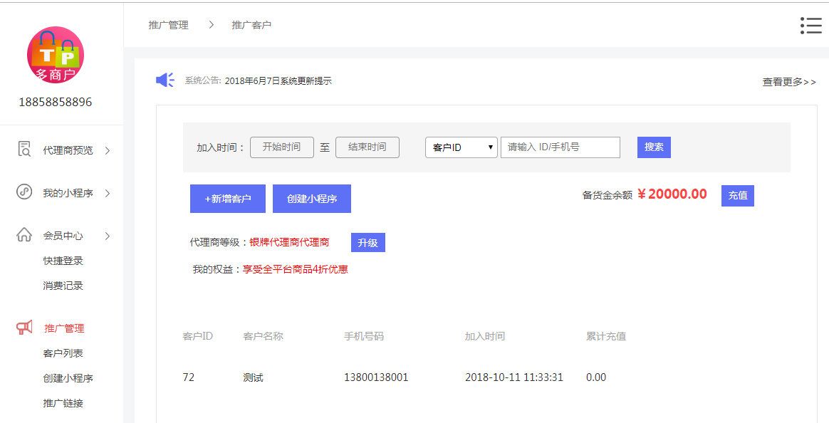 也可以在此页面升级代理商,针对于如何升级代理商,tpshop商品准备了更详细的操作手册,大家可去查看。这里就不多说了。