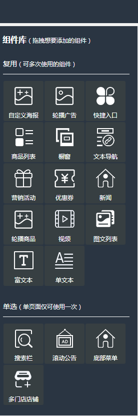 自定义组件目前分为两大部分:可复用组件和单选组件。