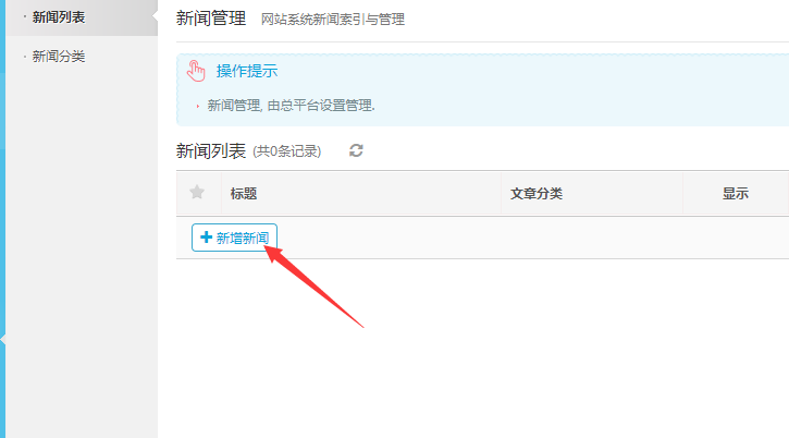 在选择链接到新闻页面之前,首先我们先要去新闻列表页添加新闻,而在添加新闻之前,需要先添加新闻分类。