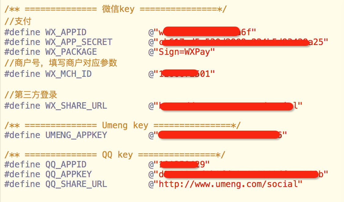 B). 在ShopMobile/Utils/AppConfig.pch中配置微信, QQ, 友盟APPID