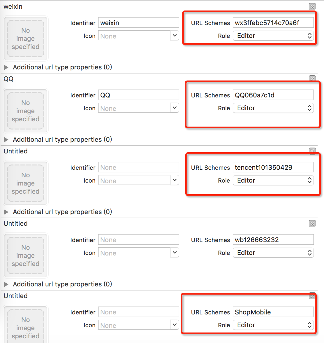 具体配置方法参考友盟Share SDK 集成配置说明: U-Share SDK平台配置 -> 添加URL Types