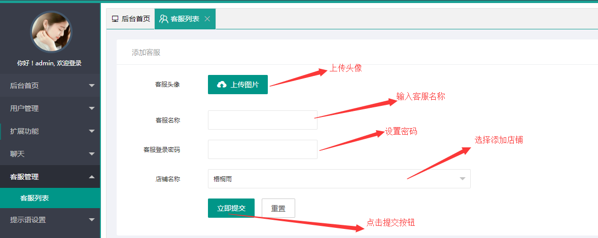 添加客服管理员