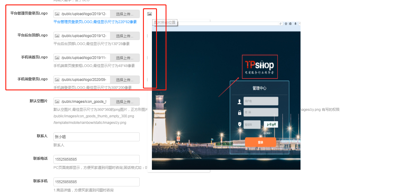 上传logo的地方跟上面一样,可查看预览位置在哪里
