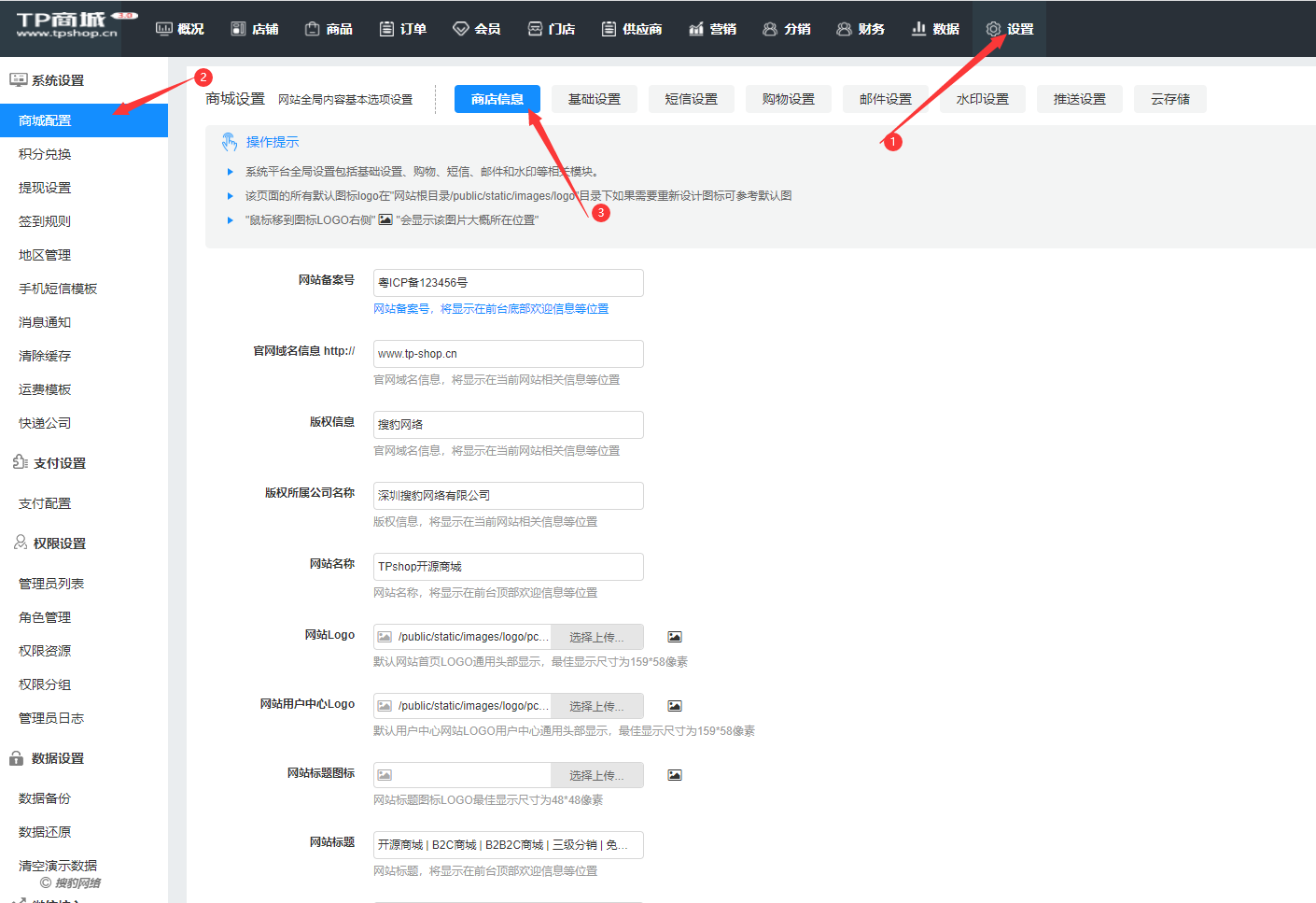 平台位置:设置--商城配置--商店信息