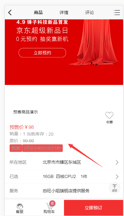 然后这个时候,用户就可以在前台访问到这个预售商品了。