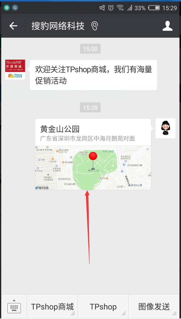 (5)最后一种菜单类型是地址位置。也就是用户发送自己目前的定位。