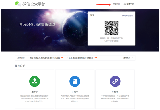 那么我们只有去注册一个了,或者进入https://mp.weixin.qq.com/注册