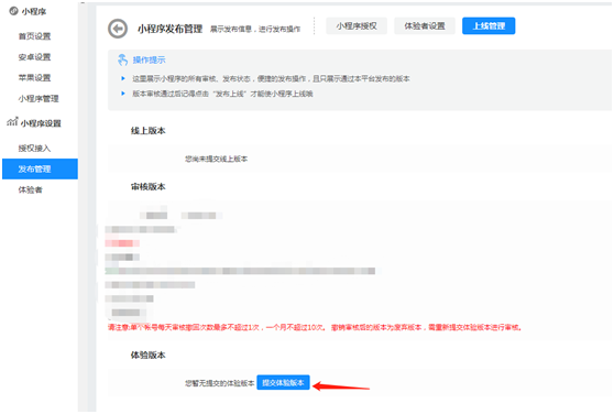 假如我们这里没有体验版的小程序的话,需要我们自己提交一个